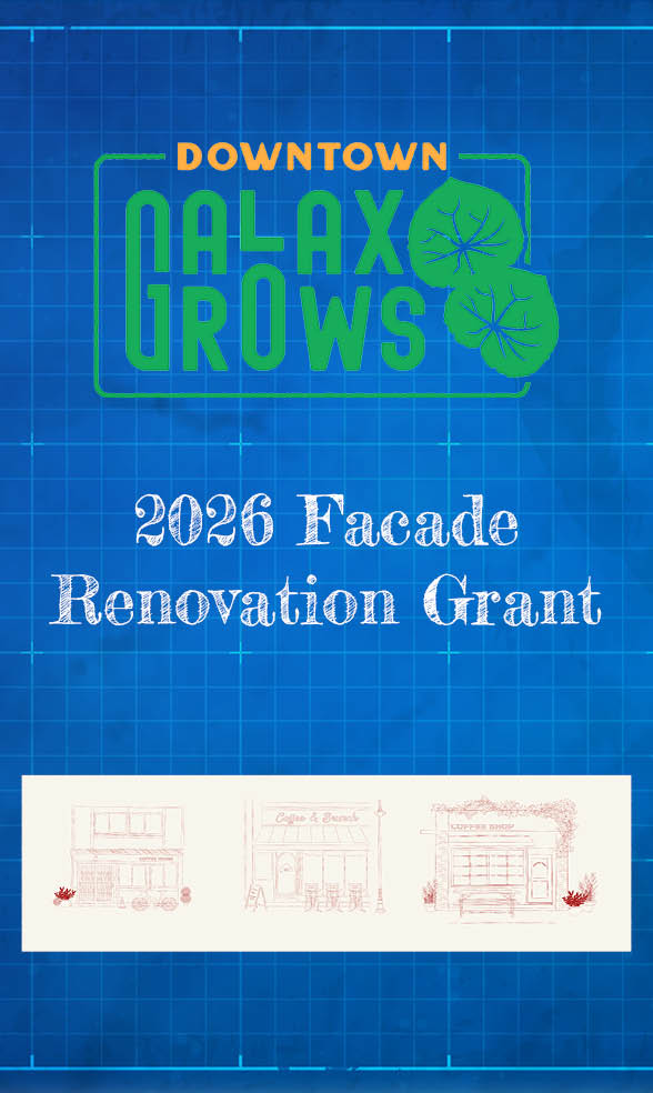 Downtown Galax Grows offers Downtown Galax business property owners the oppurtunity to enhance their storefronts and buildings with a matching reimbursement grant. This project provides matching grants ranging on a dollar-for-dollar basis in amounts ranging from $500 to $5,000 to assist downtown businesses along designated areas in the City of Galax with building façade rehabilitation and other general property improvements undertaken in accordance with established design guidelines.