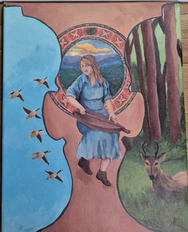 The sound of old-time music has carried through these mountains for generations. If you spend enough time here, you start to feel it in the landscape-the hollers, thewater, the wildlife, all moving together in their own rhythm. I try to capture that aliveness and spirit in my art and it’s what inspires me to continue creating. The fiddle, the flowing water, and the natural elements in the mural are meant to show that connection between music, nature, and creativity that's long been part of life here. I am proud to live in a place that is so willing to facilitate opportunities for amazing art to occur. The magic in the mountains is alive and I hope this mural reflects a bit of the spirit of this place and celebrates the unique attributes that make it home.